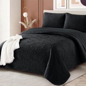Cobertor color entero negro. De muy buena calidad.   1 PLAZA 1/2 – 5 Piezas: 1 Sábana superior 160