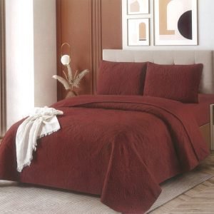 Edredón acolchado King 1200 hilos color celeste con hojas lilas y verdes