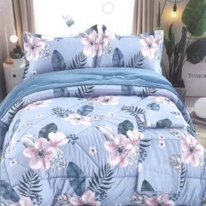 Rango de precios: desde S/ 186.00 hasta S/ 258.00 S/.Edredón acolchado King 1200 hilos color celeste con flores amarillas,blancas y marrones
