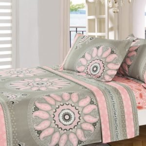 Edredón acolchado King 1200 hilos color verde agua con flores marron con blanco